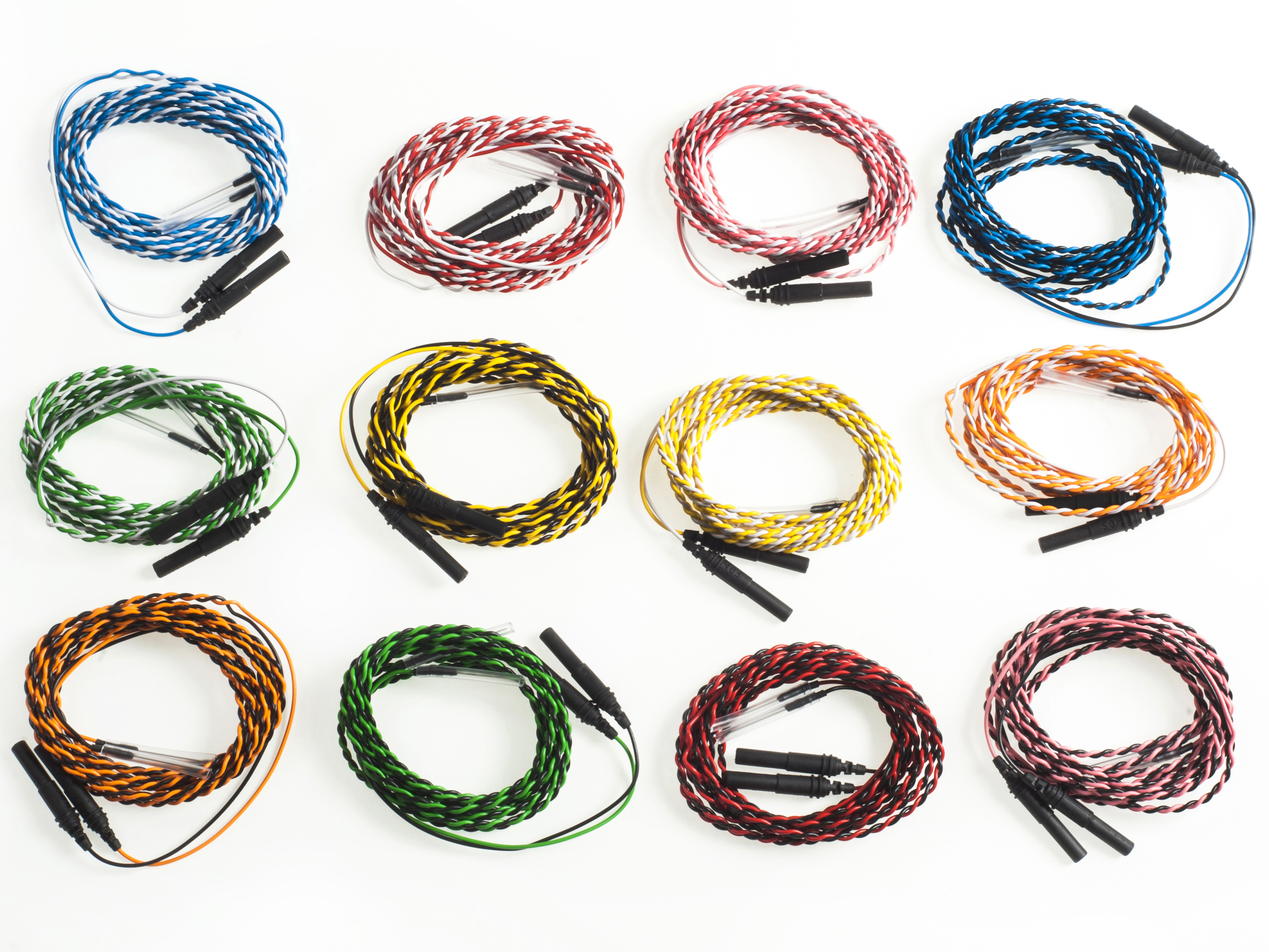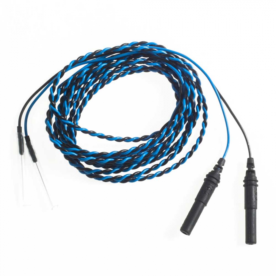 Disposable sterile neurological needle electrode purpose is to stimulate and collect bioelectric signals (EEG, ECG and EMG) from corresponding parts of human bodies during clinical diagnosis, examination, treatment and surgical operations. The crossover of the wires improves signal quality by eliminating cross-talk between electrodes and external interference.